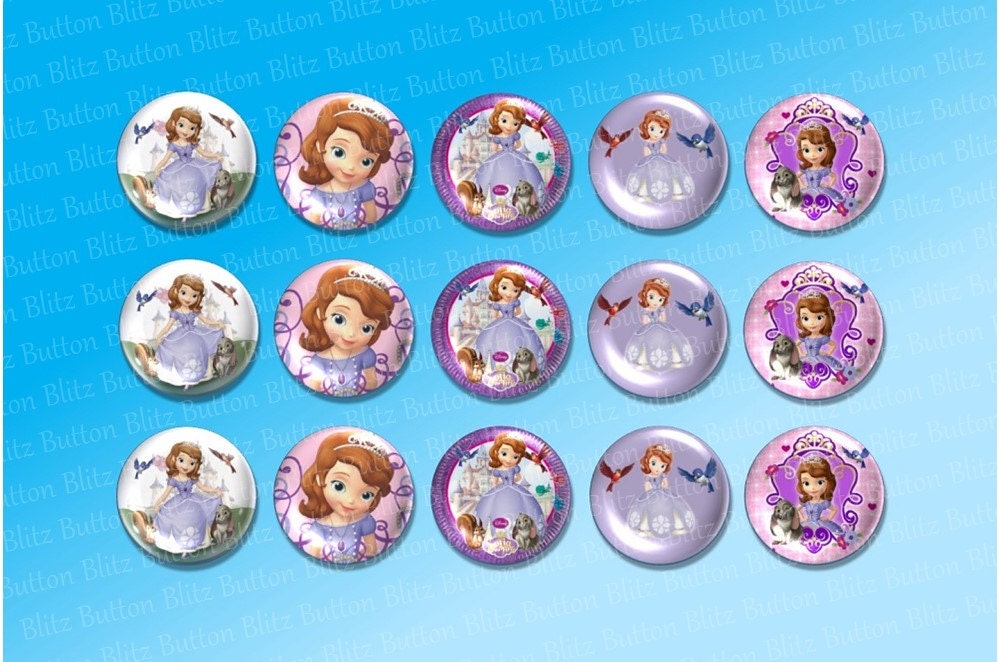 15 Sofia the First Button Set Pin Back Metal Flat Back and Magnet Party Favors Birthday Favorite Princess Party