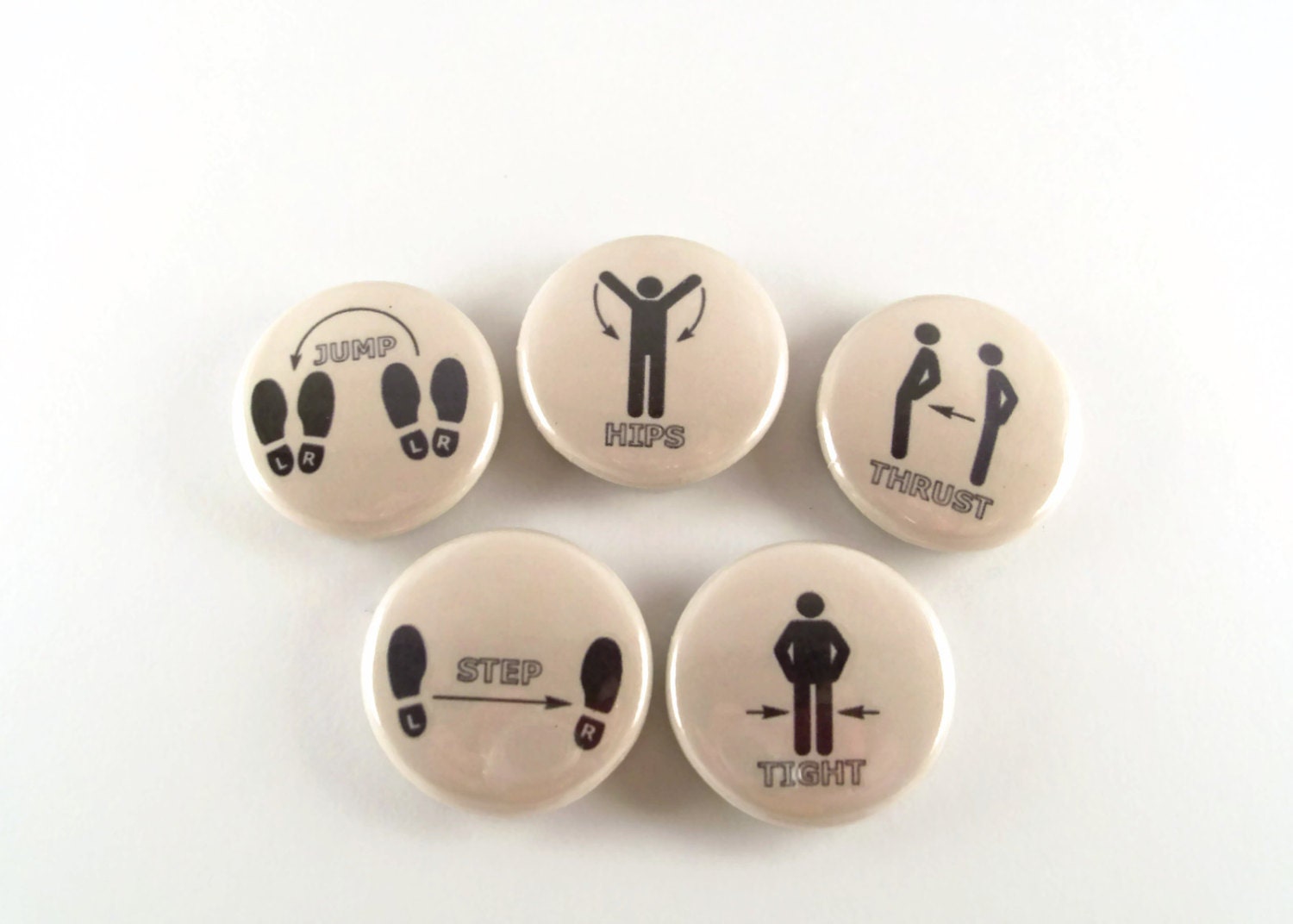 Time Warp Dance Steps - Set of 5 - One Inch Magnet Buttons or Pinback Buttons Inspired by movie The Rocky Horror Picture Show (1975)